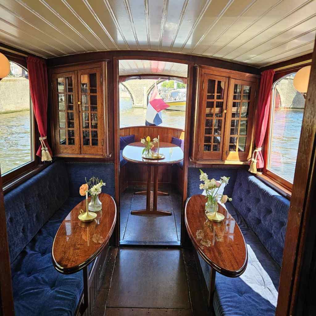 Un menu déroulant apparaîtra ci-dessous pour vous permettre de choisir votre restaurant. Vous trouverez les détails (menu et tarifs) des restaurants dans notre section en bas de page. Pour un dîner-croisière de luxe de 3 ou 4 plats, nous recommandons une excursion de 180 minutes. N’hésitez pas à nous contacter si vous souhaitez déguster plus de 2 plats lors de votre dîner-croisière de luxe privé à Amsterdam.